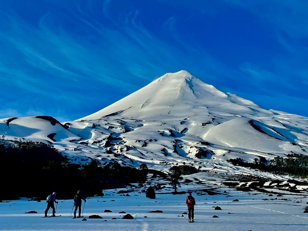 Volcano Ski Mountaineering in Chile: The ultimate backcountry skiing and splitboarding experience amidst the spectacular volcanoes of Chile’s Araucania region! Our tour combines epic ski descents with visits to small towns, national parks, volcanic landscapes, rejuvenating hot springs, and cozy accommodations, creating an unforgettable adventure. While we provide a planned itinerary, we remain flexible with our plans to accommodate changing conditions or volcanic activity, ensuring your safety and enjoyment.