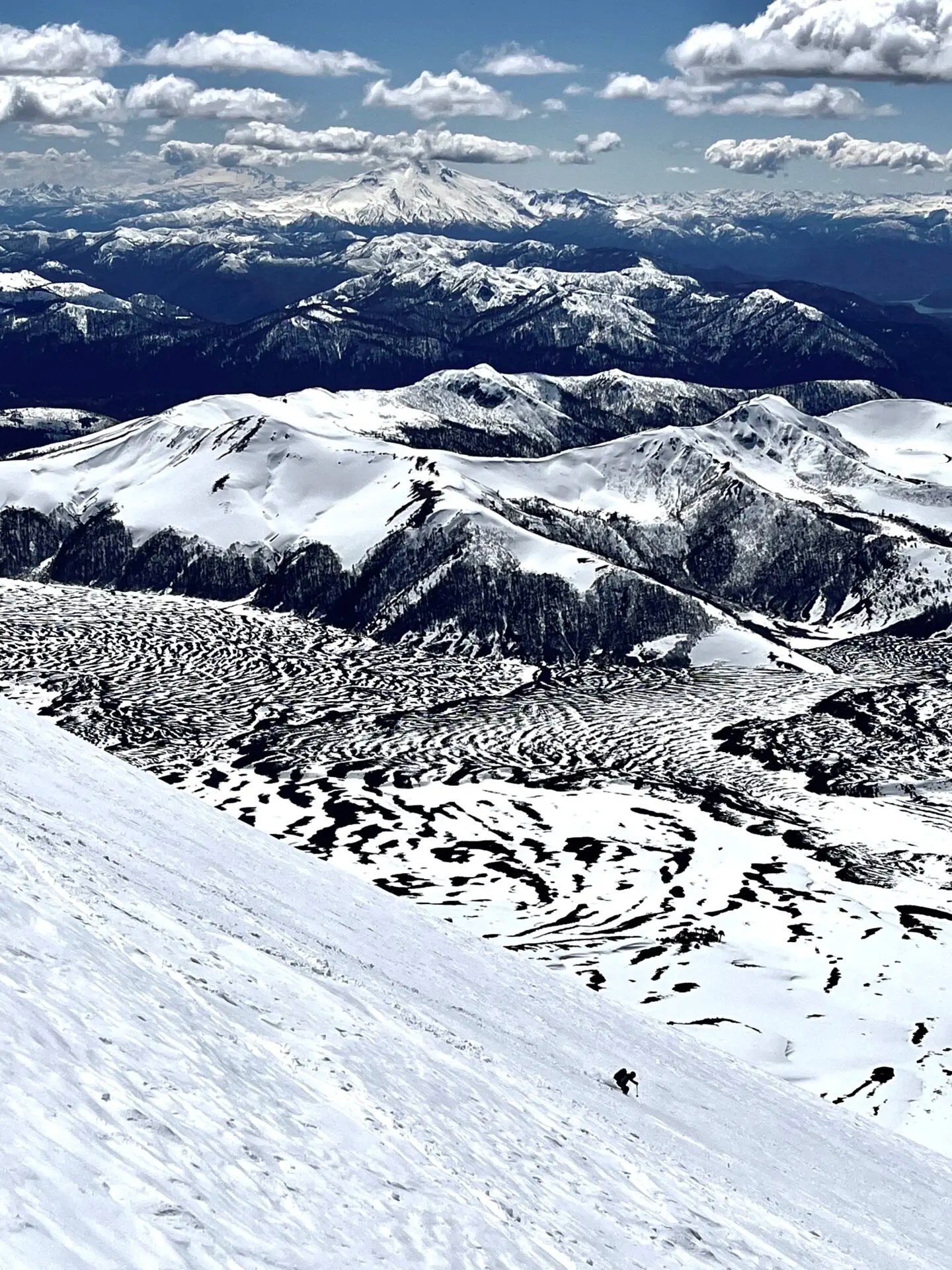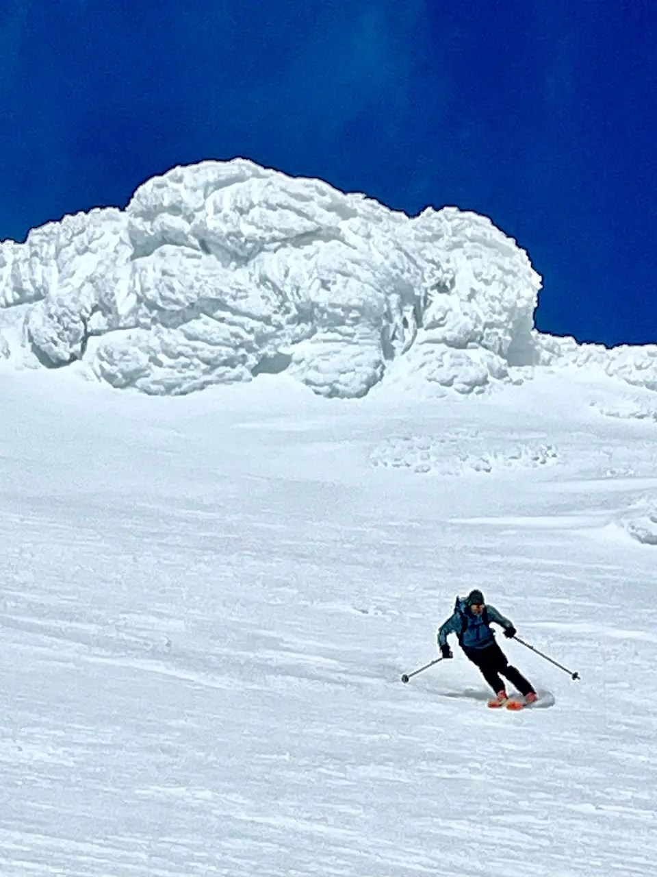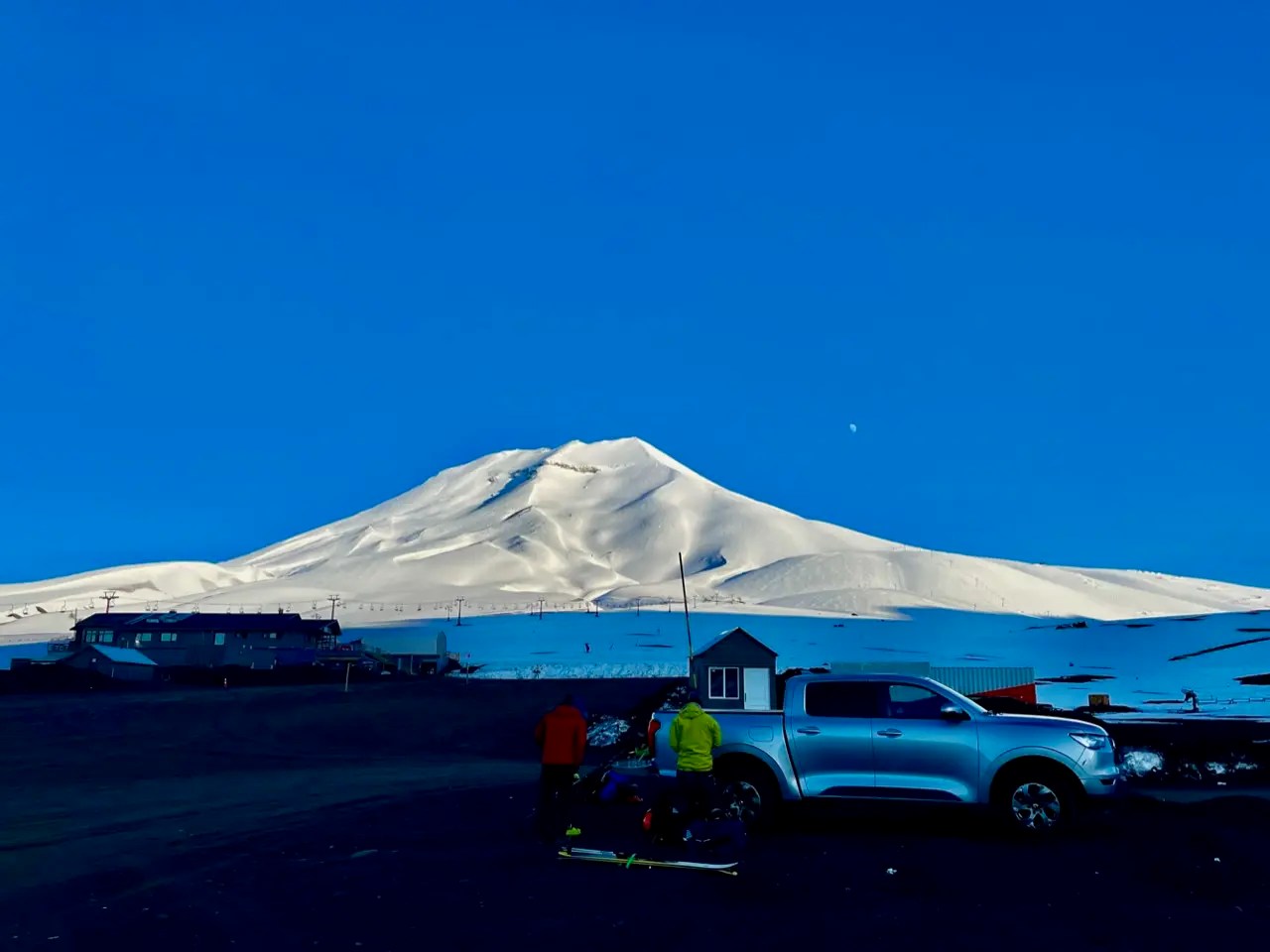 Snow Conditions: Anticipate melt-freeze spring conditions, ideally skiing sun-softened corn on the descent. While corn skiing off the volcano tops is common, lower flanks may be softer. We’ve encountered everything from great powder skiing to varying conditions in between.