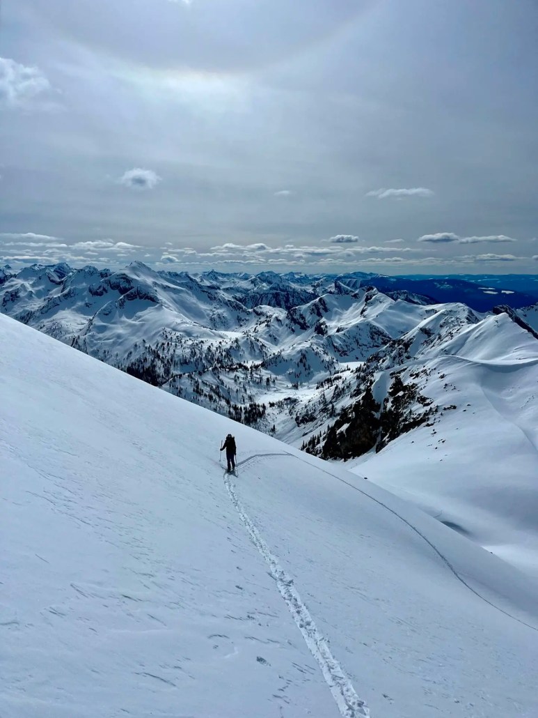 We’ve had an incredible stretch of skiing in April this year. Cool temps and intermittent precipitation have provided great conditions. As my guiding season was starting to wind down, I was beginning to feel the itch for some personal mountain time. A perfectly timed omega block was a call to action for a quick hit in the Valhallas.